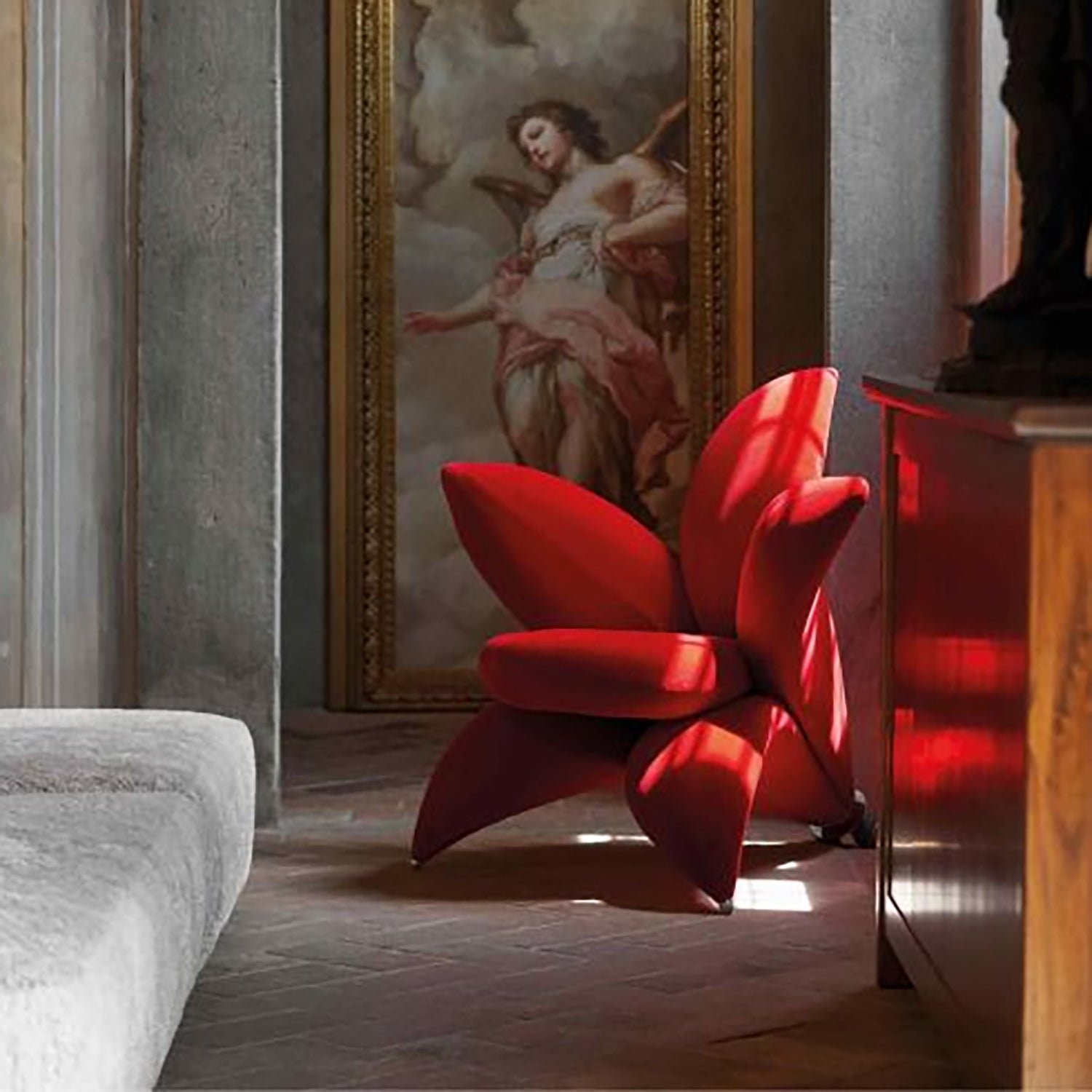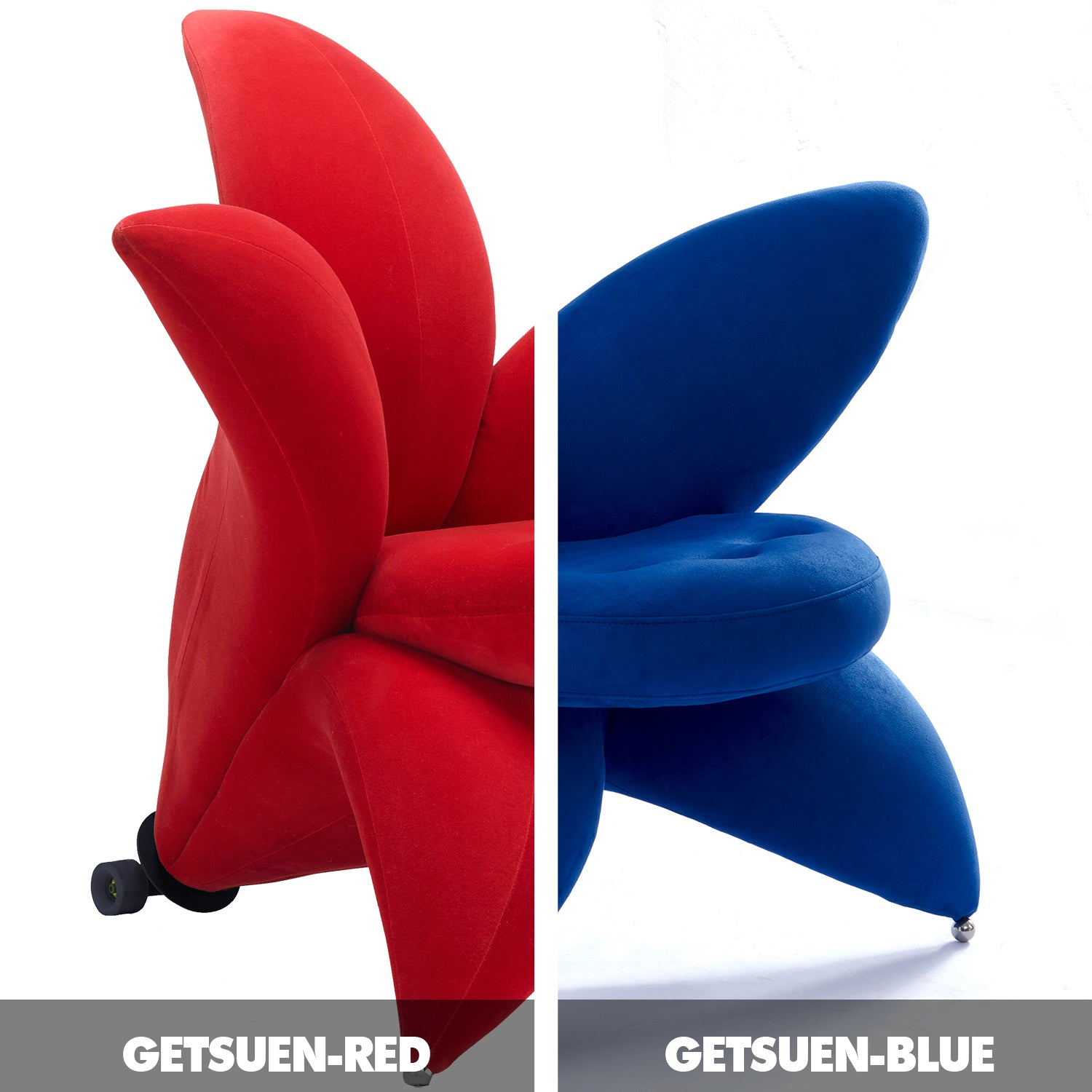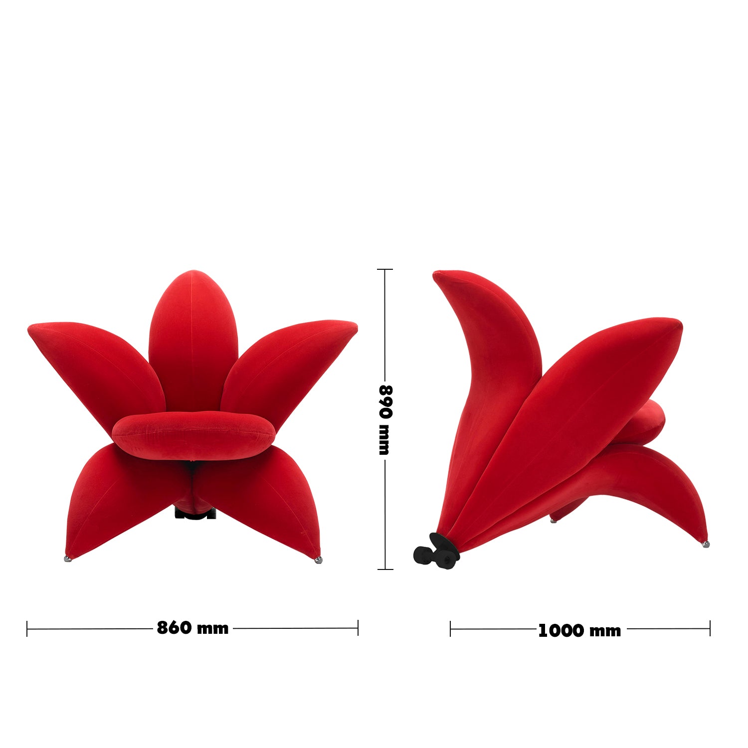 Contemporary Velvet 1 Seater Sofa Chair GETSUEN blends lily-inspired beauty with a hidden steel frame where sculptural elegance meets lasting strength.