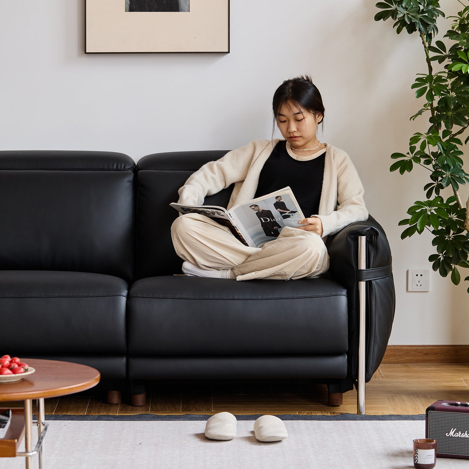 Minimalist Microfiber Leather Electric Recliner 3 Seater Sofa CALMERA