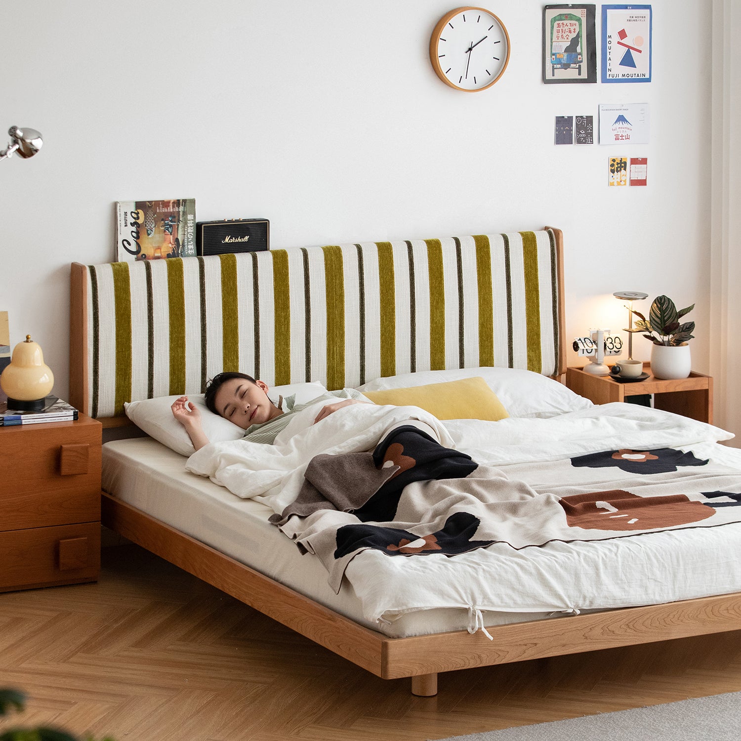 Scandinavian Mixed Wave Fabric Cherry Wood Bed LES