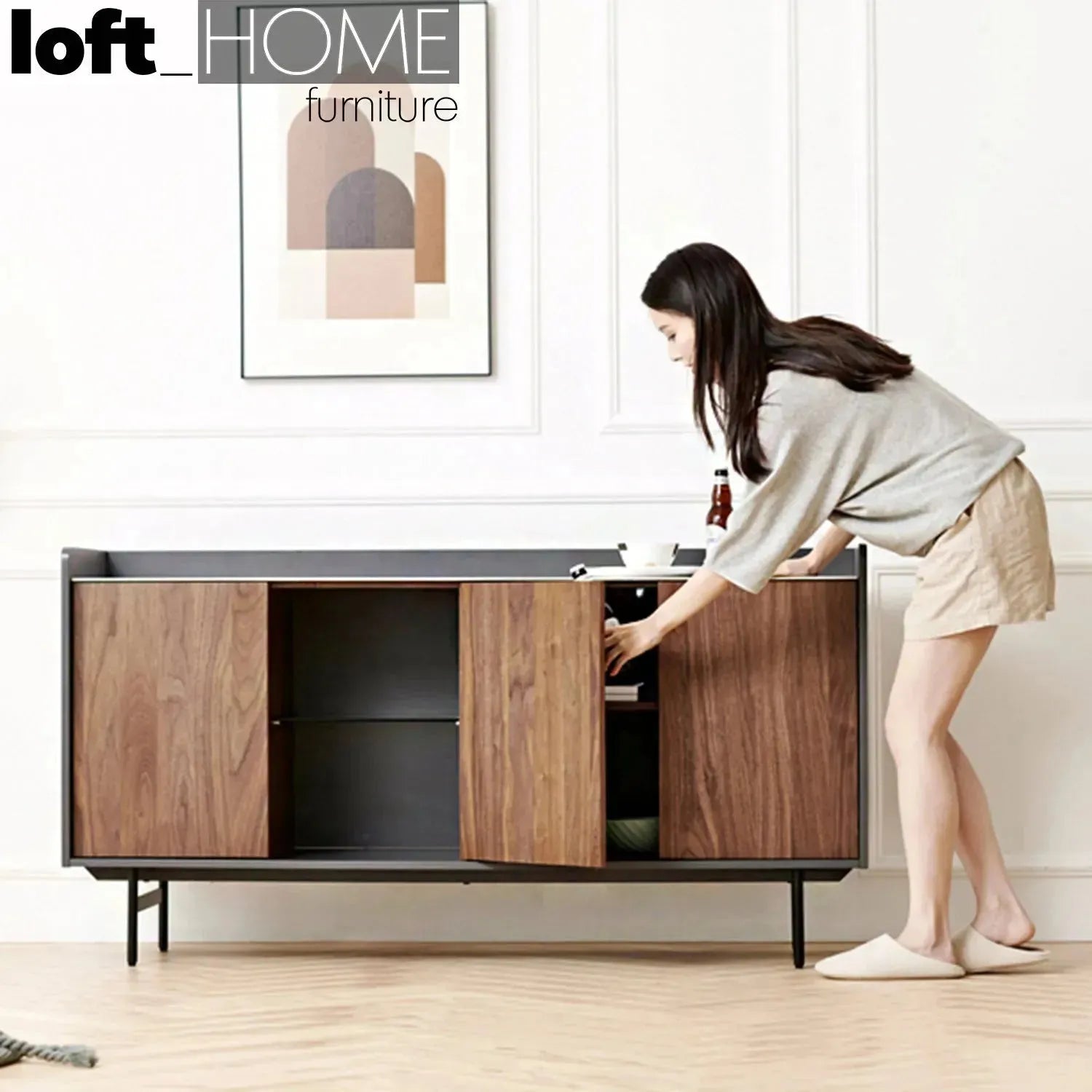 Modern ceramic side cabinet alvin in real life style.