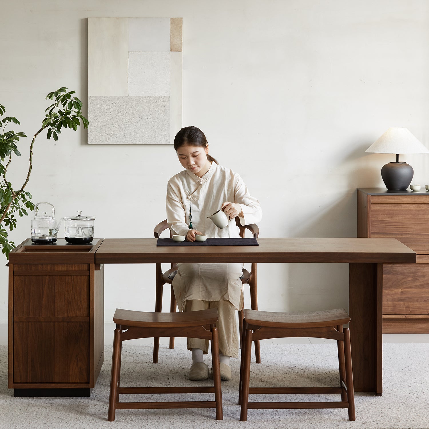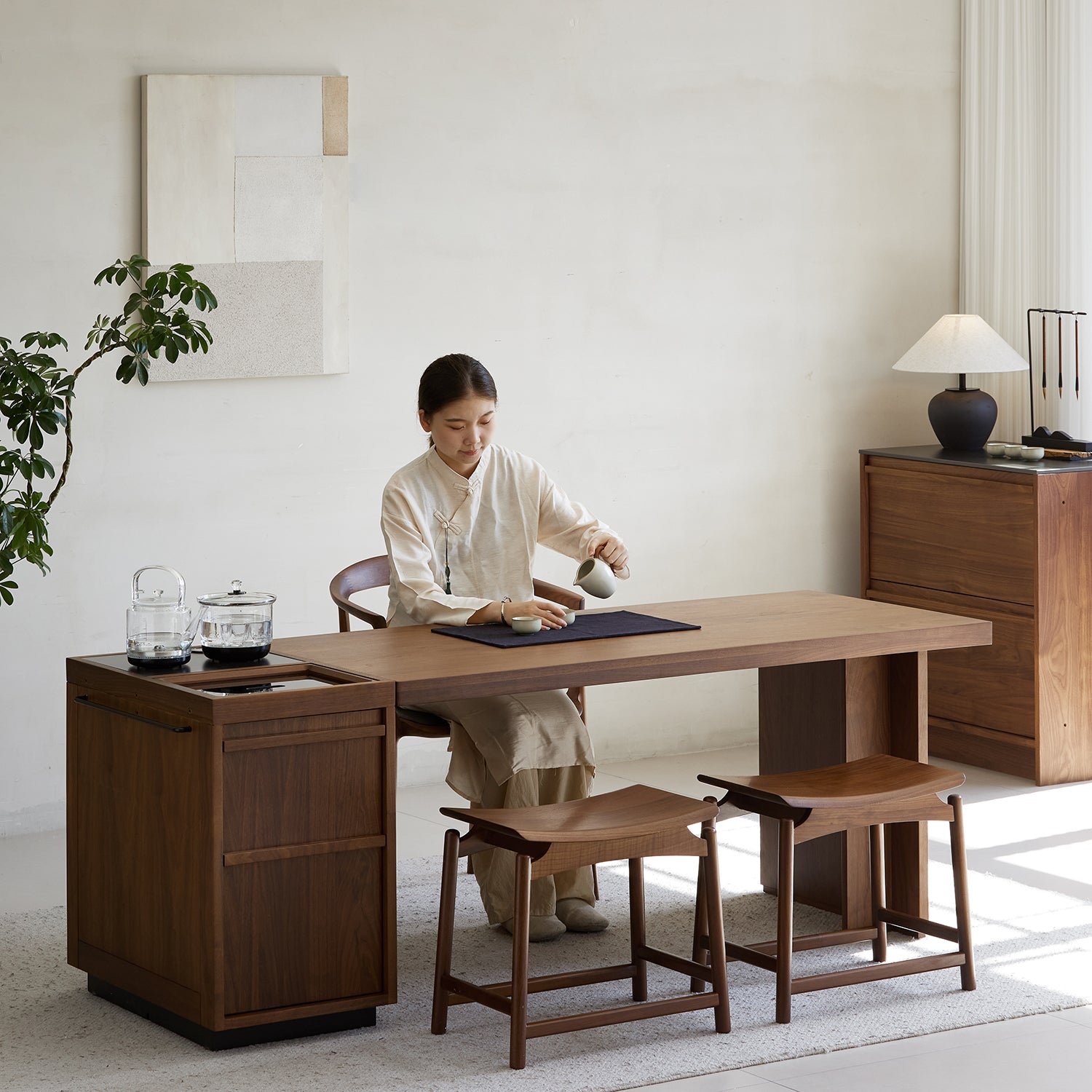 Experience refined comfort with the Japandi Walnut Wood Stool ARCUS, crafted from premium walnut for natural support, lasting durability, and timeless style.