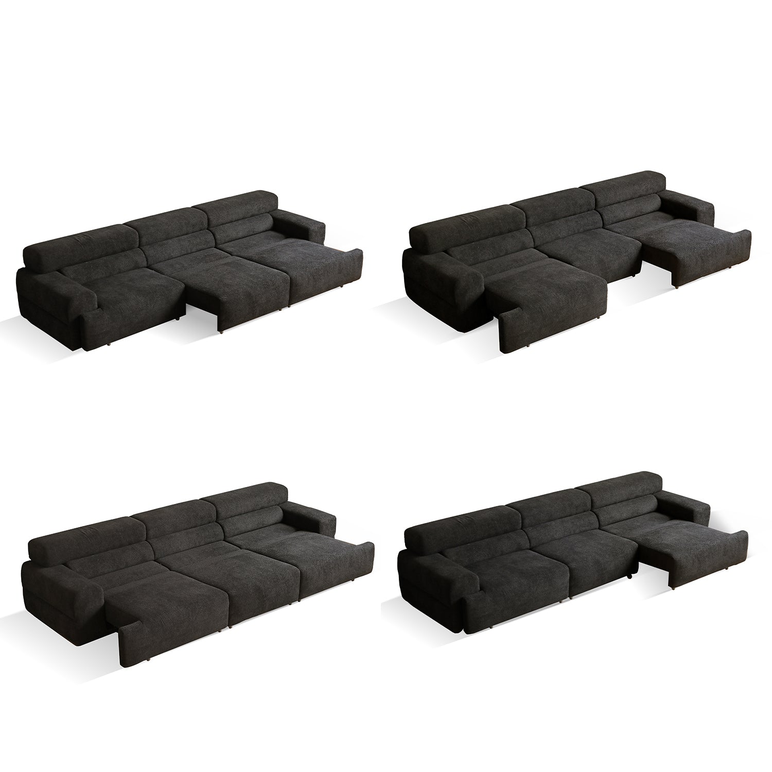 Each seat can independently transform into a sofa, chaise lounge, or bed, effortlessly adapting to your needs with just one touch.