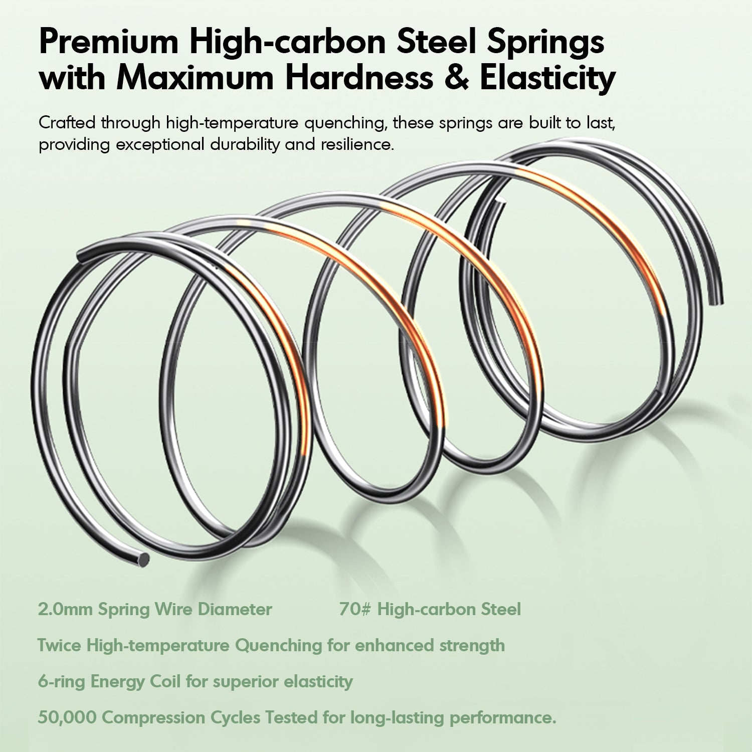High-carbon steel springs and reinforced edges ensure stability, resilience, and long-lasting performance.