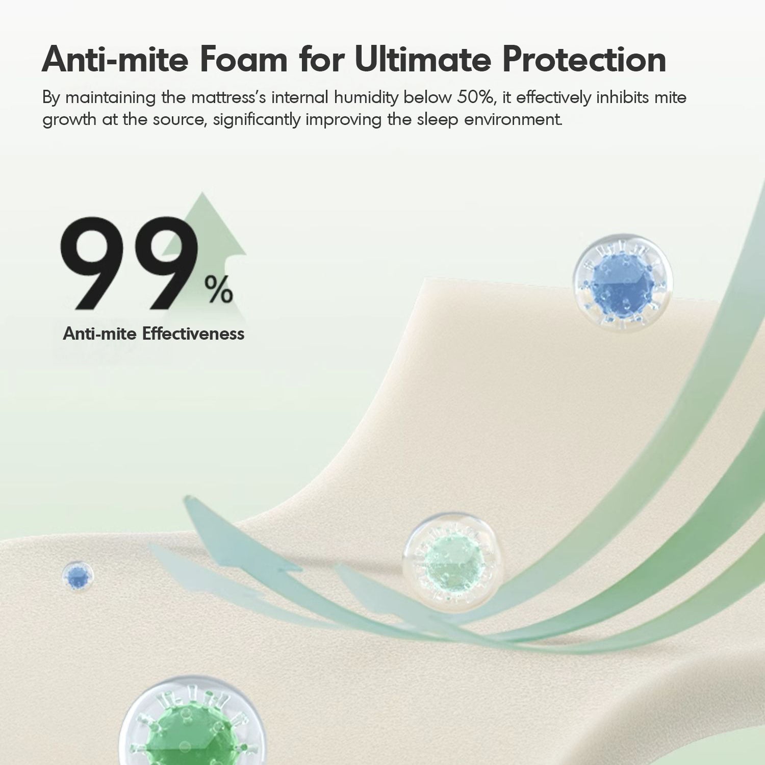 The breathable, anti-mite fabric enhances airflow and keeps humidity low, ensuring comfort and protection against allergens.