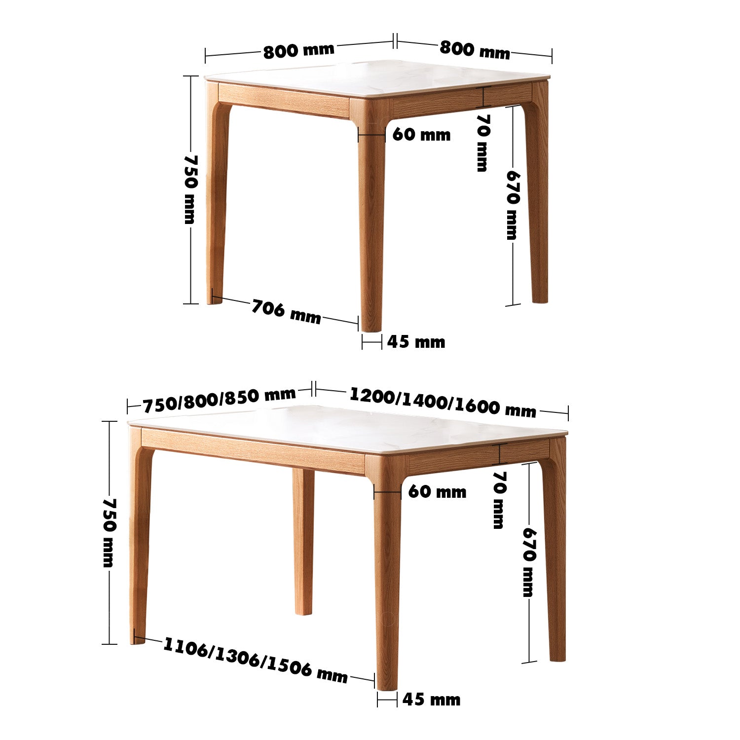 Scandinavian Oak Wood Sintered Stone Dining Table OAKLIN combines a durable, heat-resistant stone top, solid wood frame, and robust legs. Perfect for dining or as a workspace!