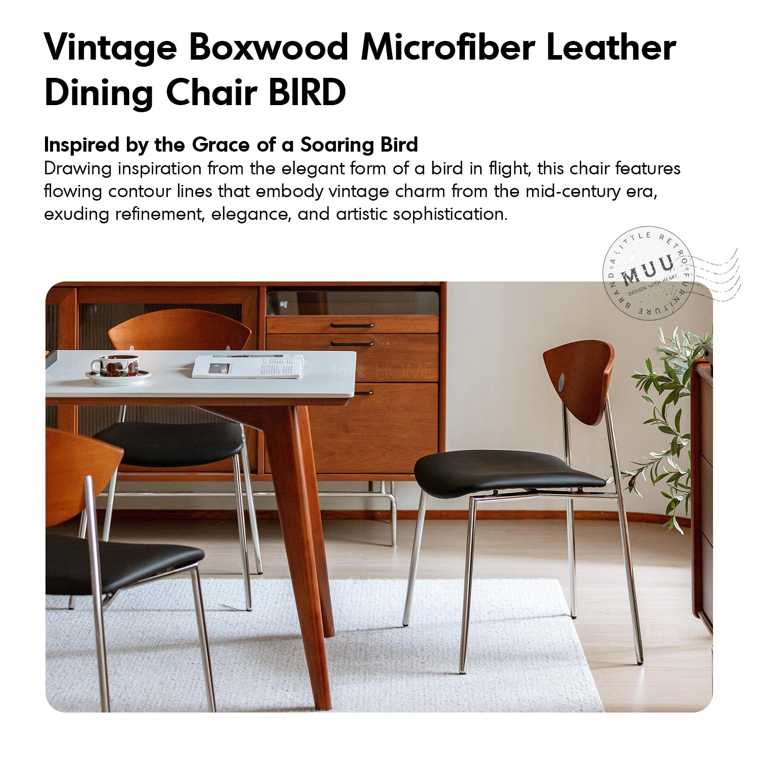 Vintage Boxwood Microfiber Leather Dining Chair BIRD