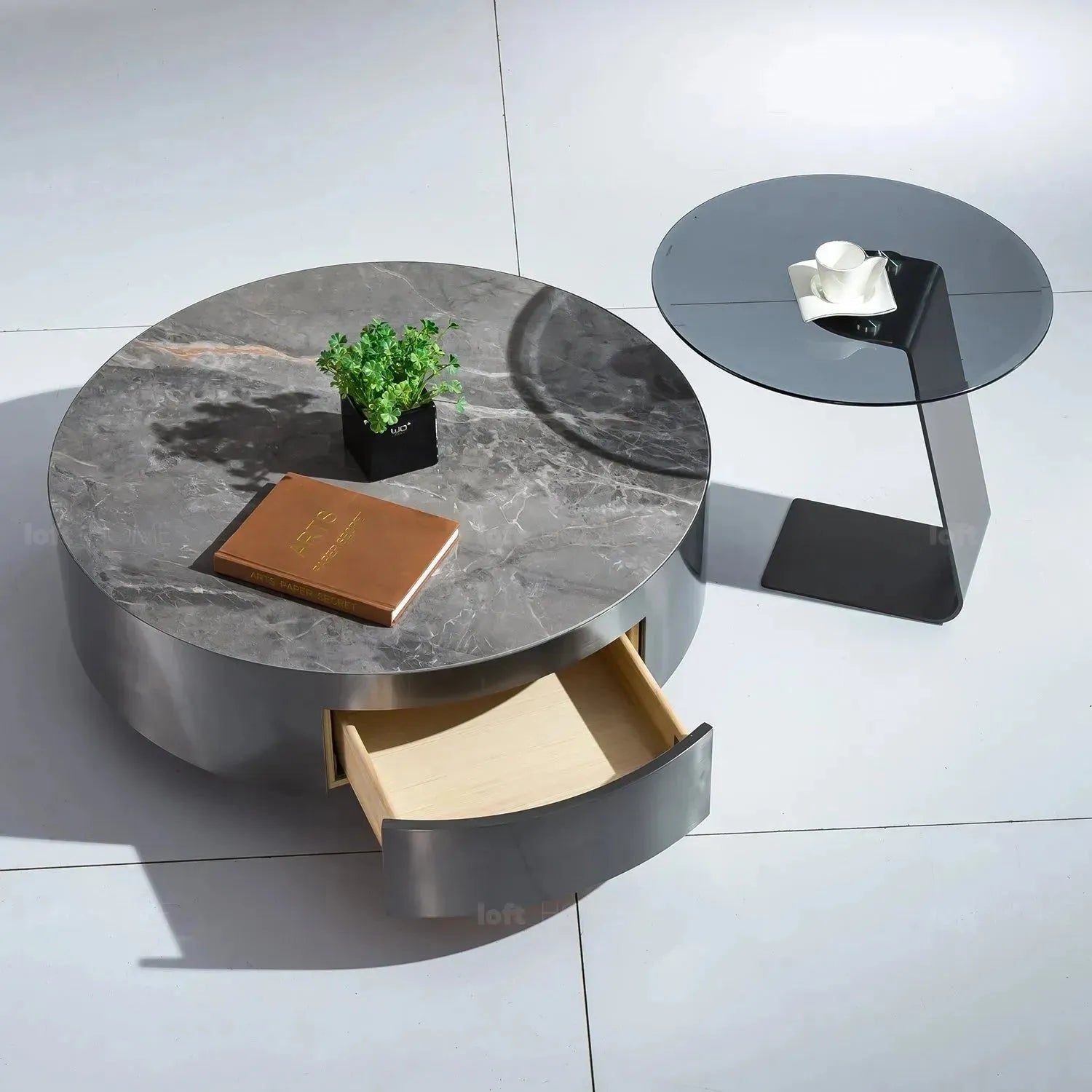 Our sintered stone coffee table will provide you with the perfect merger of style and functionality. The shiny stainless steel legs with grey finish are very elegant, modern looked and support the furniture. The soft-closing drawer also makes it easy with the promise of smooth storage. Bring a coffee table that is as stylish as it is functional to upgrade your living area.