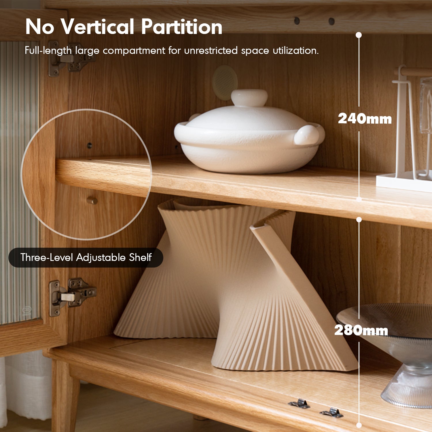 Scandinavian Oak Wood Sintered Stone Storage Side Cabinet BEAM