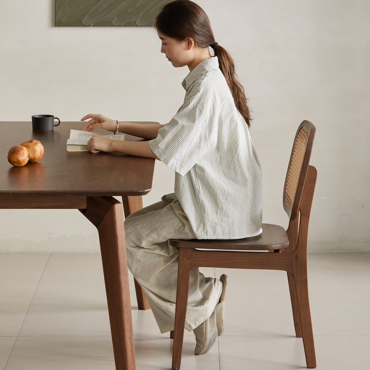 Japandi Walnut Wood Rattan Dining Chair NOOK
