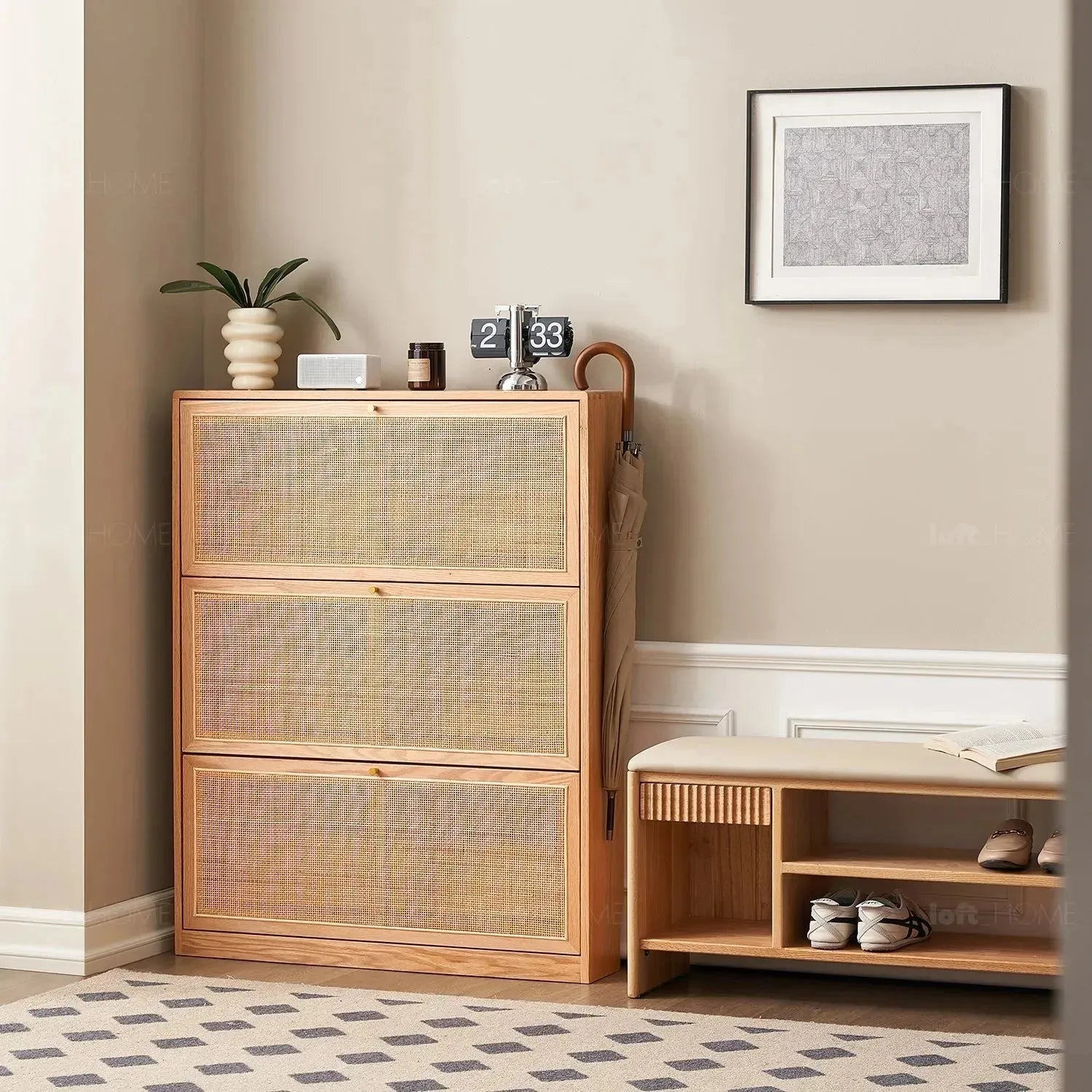 Scandinavian Wood Shoe Cabinet VINE WEAVE