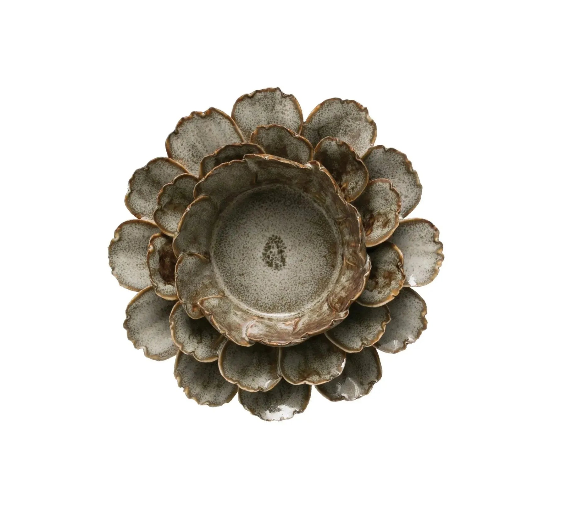 4" Round x 1-1/2"H Handmade Stoneware Flower Tealight Holder, Reactive Glaze, Be Decor