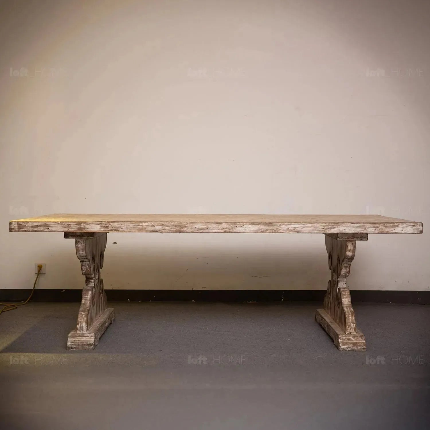 Rustic Pine Wood Dining Table SHERLOCK featuring premium solid pine wood construction with distinctive grain patterns. Its elegant vintage design provides timeless aesthetic appeal, while its versatile integration ensures both functionality and style for any dining space.