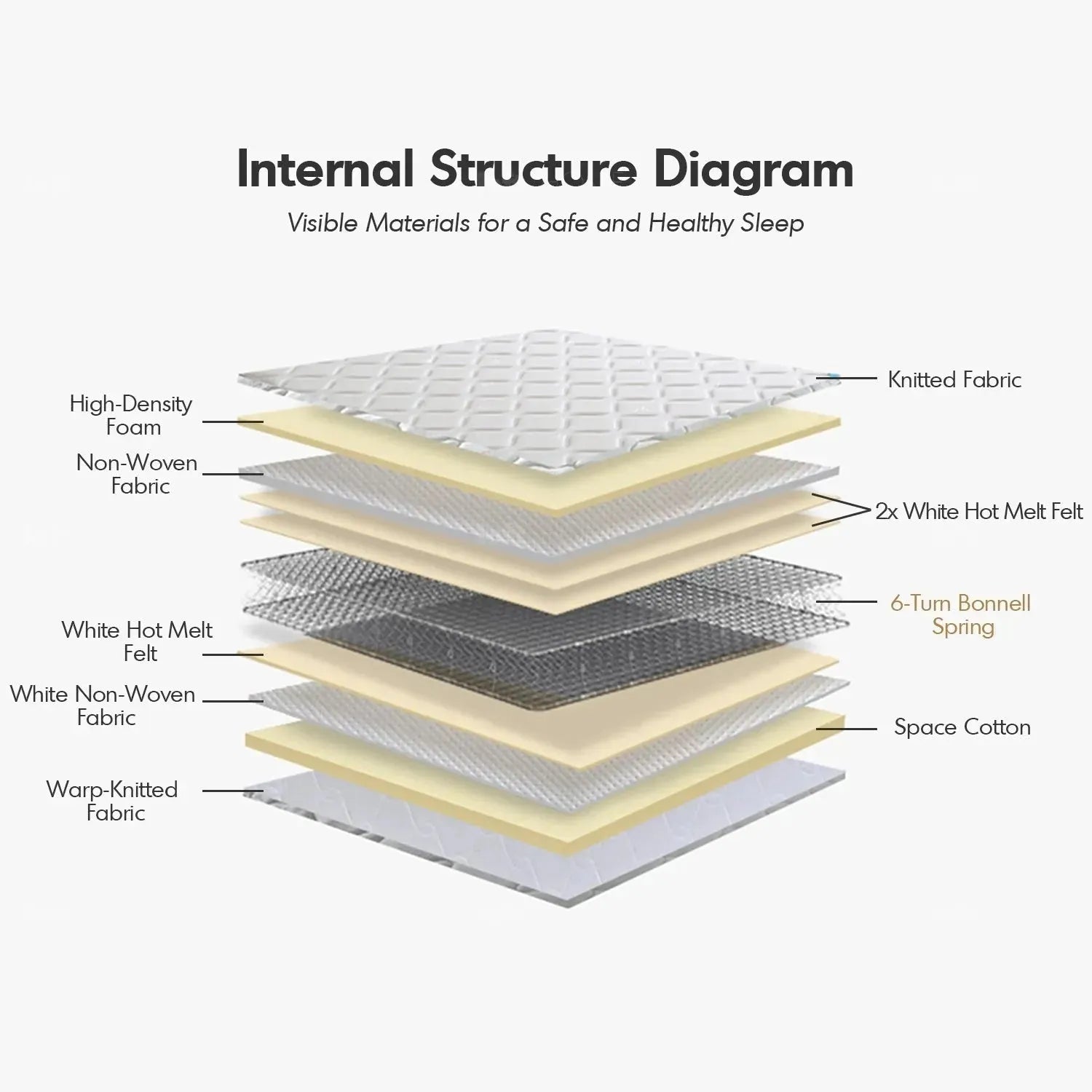 The springs are made of high-strength 6-turn precision steel springs across the entire network, providing excellent resilience and supporting the natural curvature of the spine.