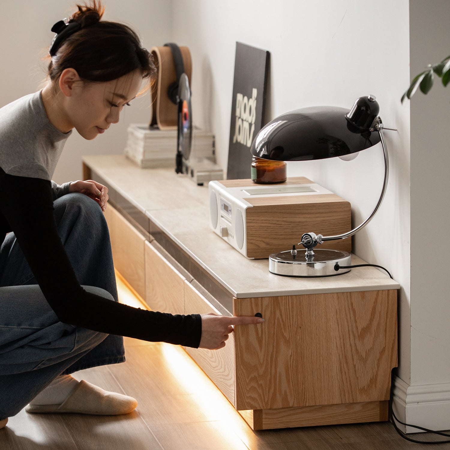 Scandinavian Oak Wood TV Console FLOATING LIGHT