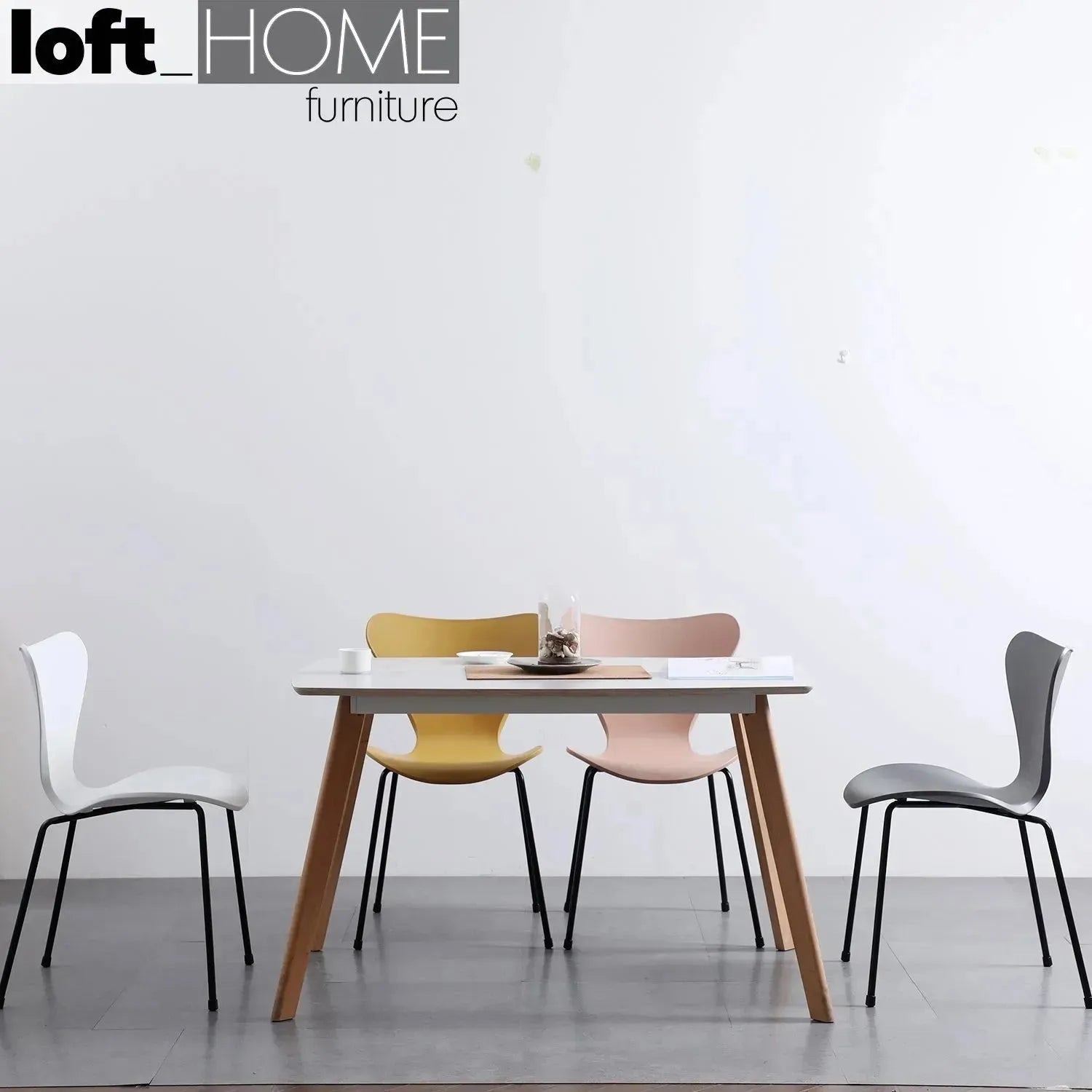 Contemporary plastic dining chair ant in real life style.