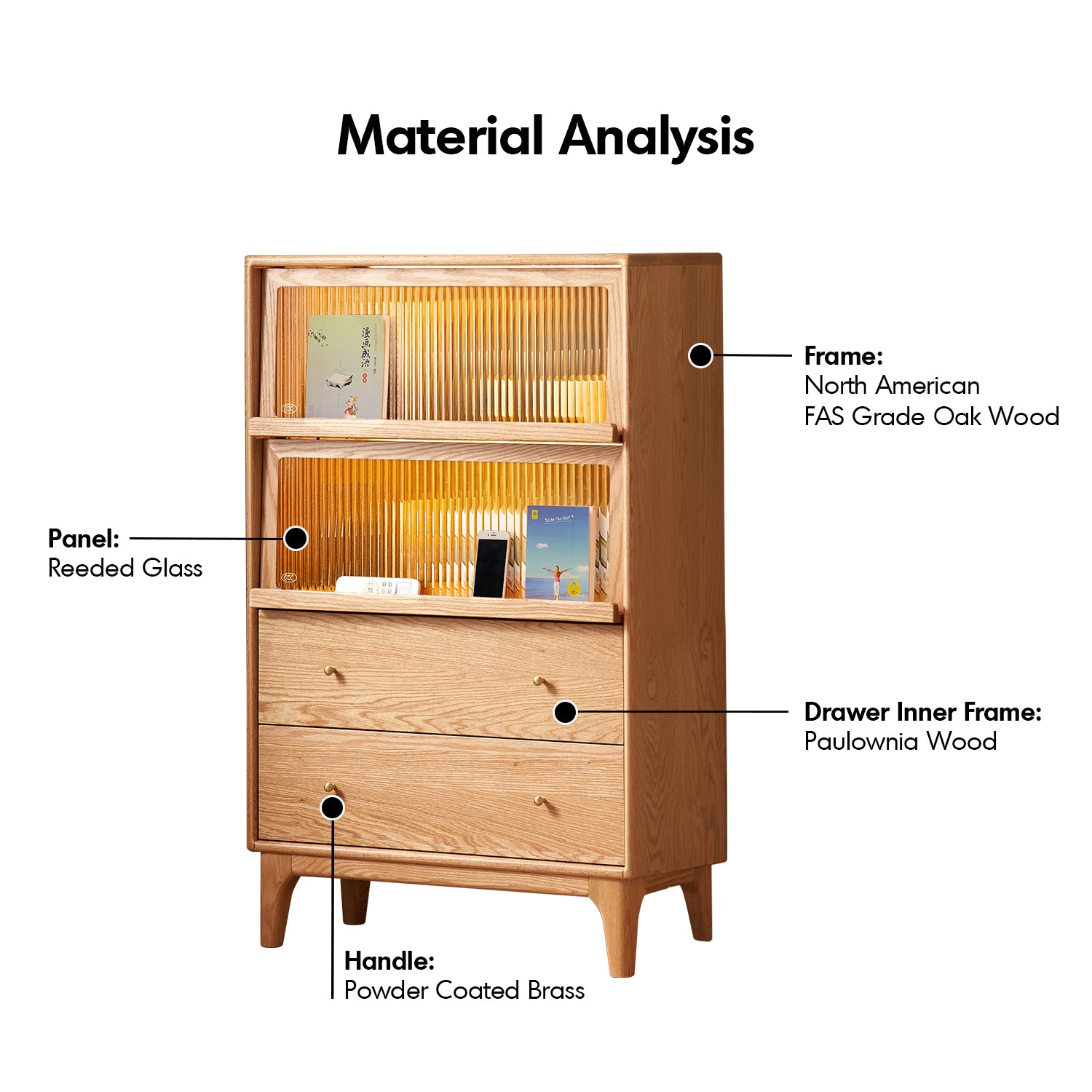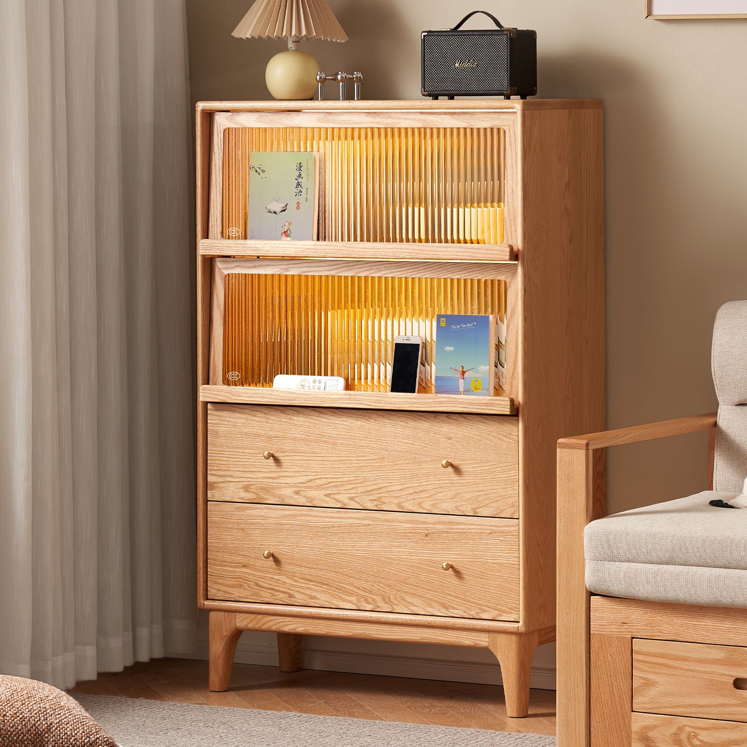 Scandinavian Oak Wood Moru Glass Chest Of Drawers Cabinet GLOW