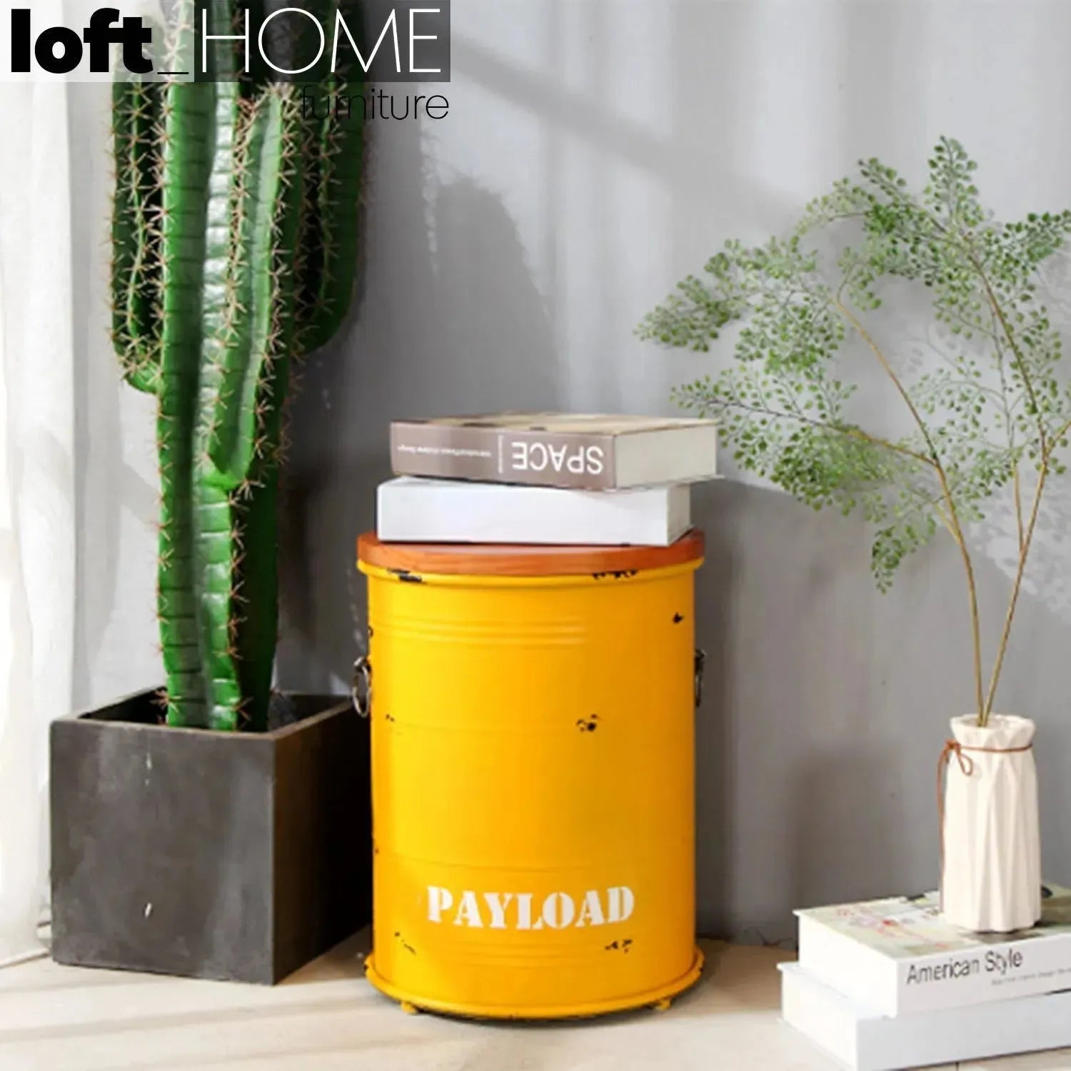 On our side table, its dimensions are L330 x W 345mm, and it is fitted with a solid wood top for warmth and personality. The antique steel finishing and anti-rust coating provide it with an industrial edge. This versatile piece works well with such contemporary or vintage-inspired interiors that it is considered an expression of industrial chic. Also, with its small size it is suitable for many spaces.