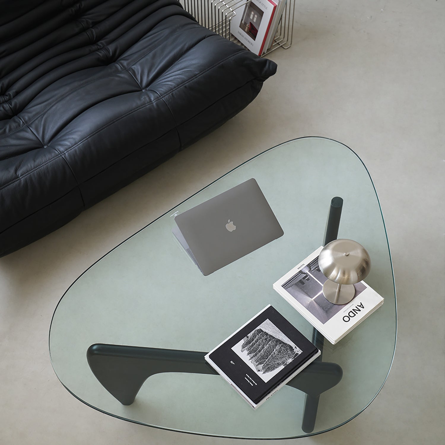 Vintage tempered glass coffee table noguchi in still life.
