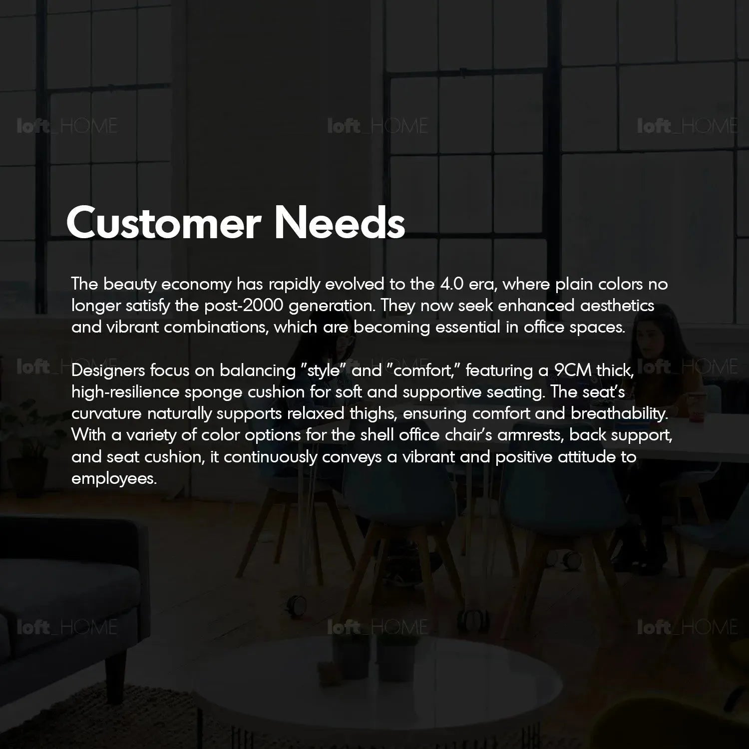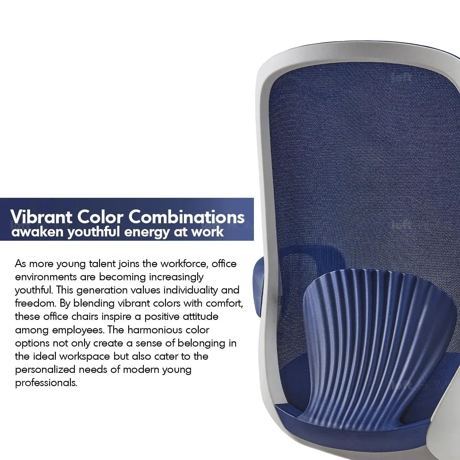 The shell-inspired lumbar support offers stylish, biometric design, ensuring maximum back support while capturing the attention of young professionals. |