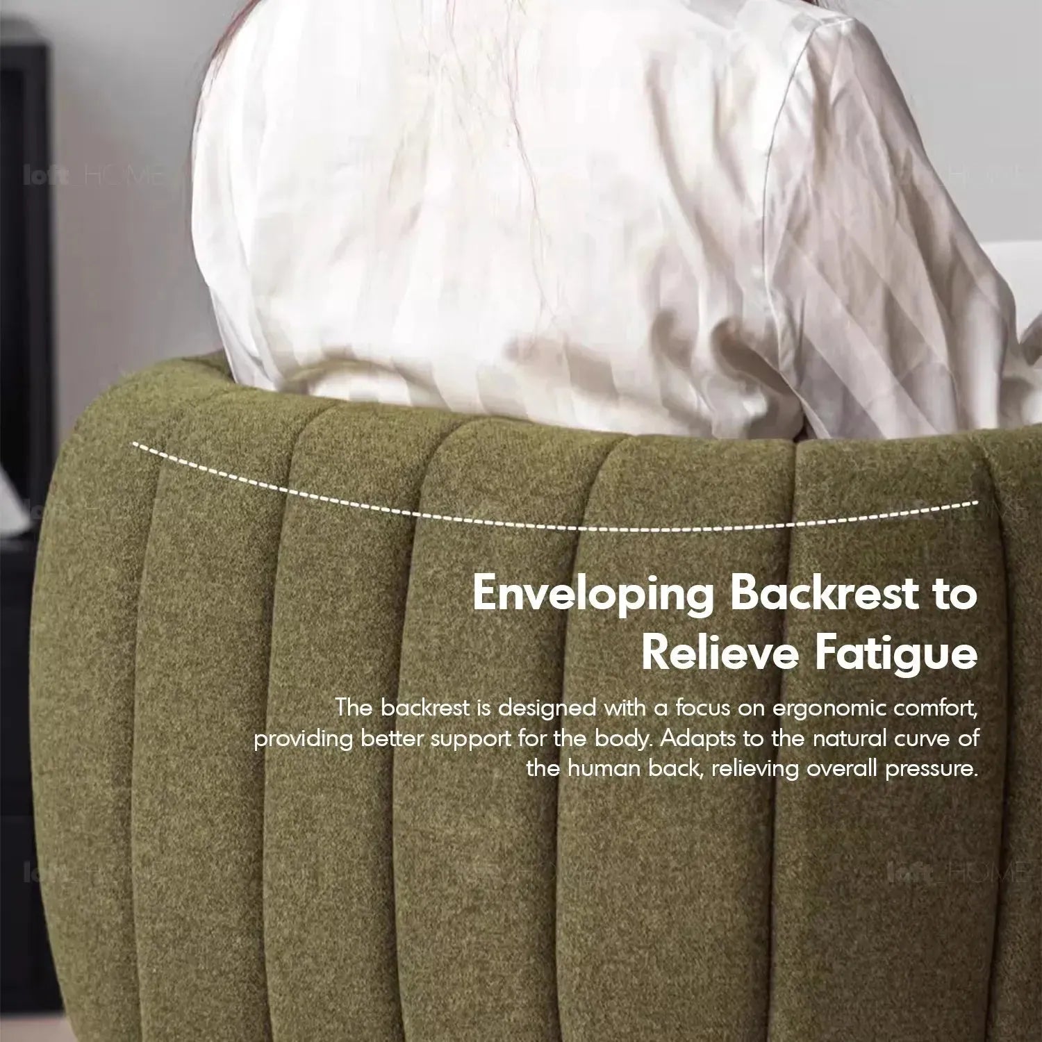 Designed with rounded and smooth lines, complemented by an enveloping backrest to alleviate fatigue and enhance seating comfort. |