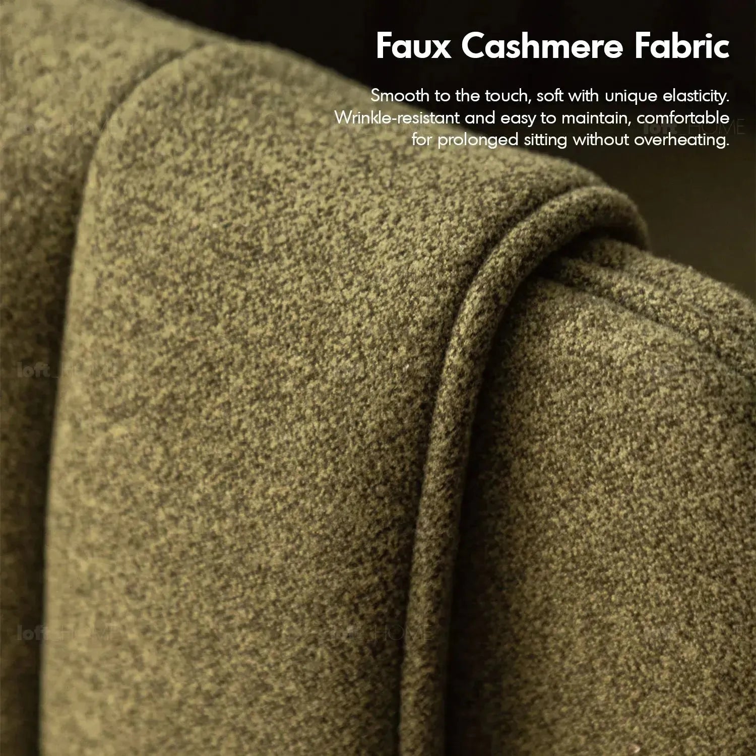 Upholstered in high-quality faux cashmere fabric in a sophisticated dark olive green color, providing a plush and elegant appearance. |