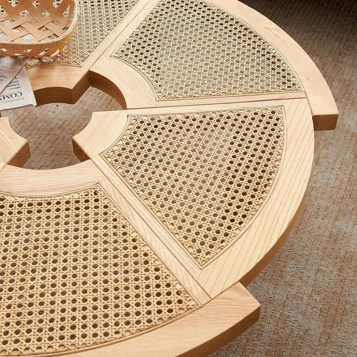 Tabletop Solid Ashwood and Rattan Cane Weaving
