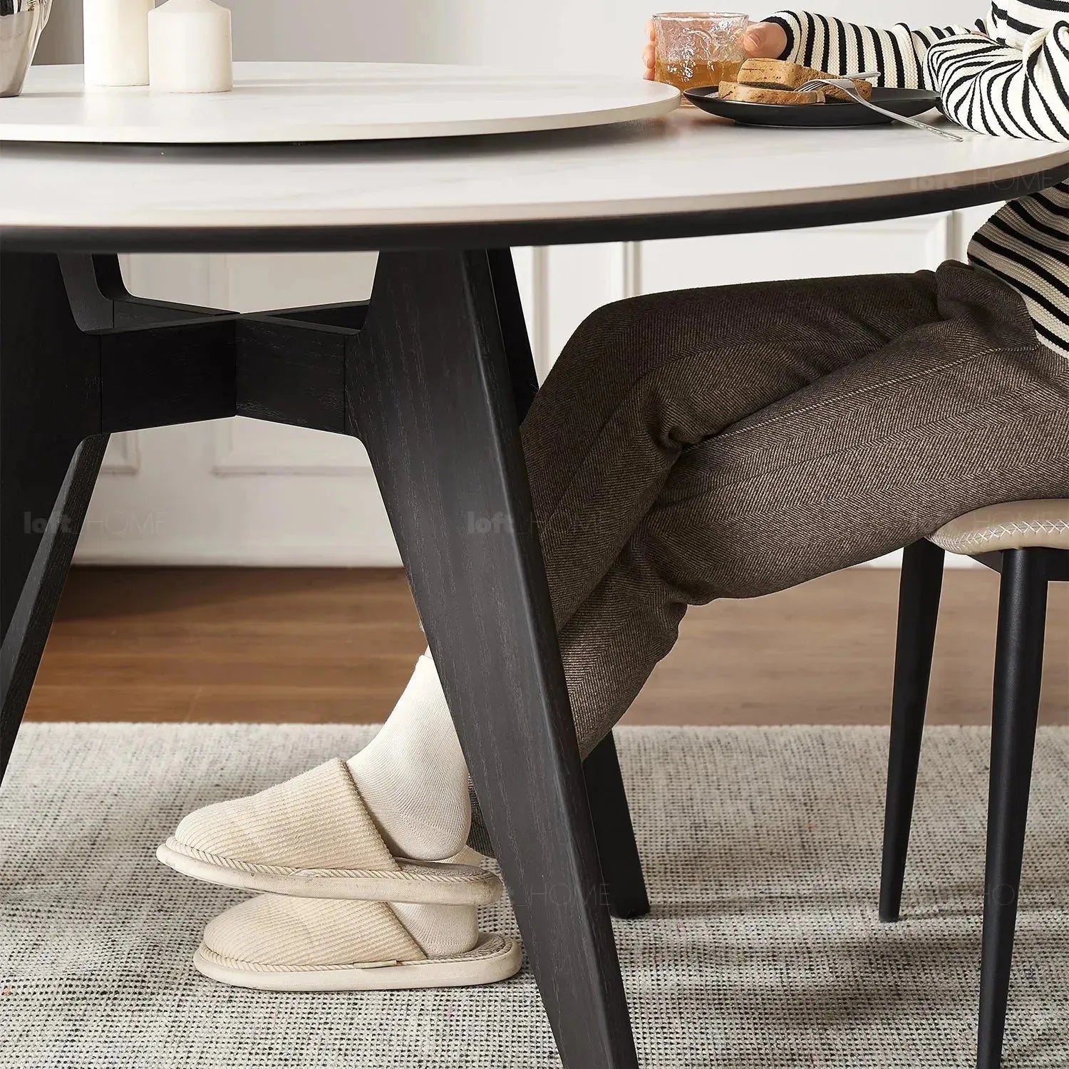 Distinguished from typical dining tables on the market, featuring widened and thickened legs with solid materials, ensuring minimal wobbling of the tabletop. Cross-bracing Support in the Middle of the Legs The cross-bracing support stabilizes the legs while providing an aesthetically pleasing design, ensuring solid support for the tabletop. |